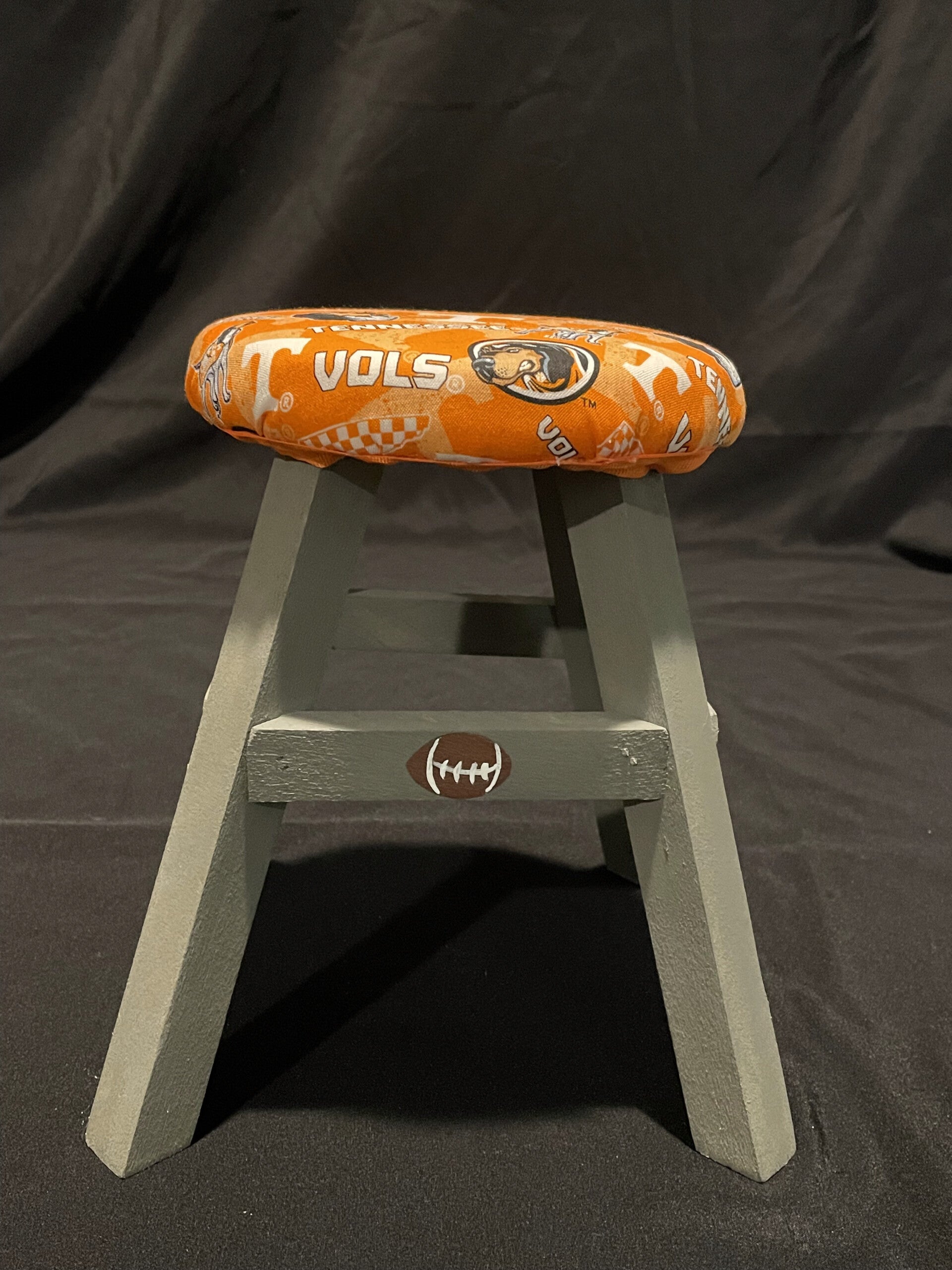 this are 8 inches tall stool and 6 inch round. wrapped with UT material