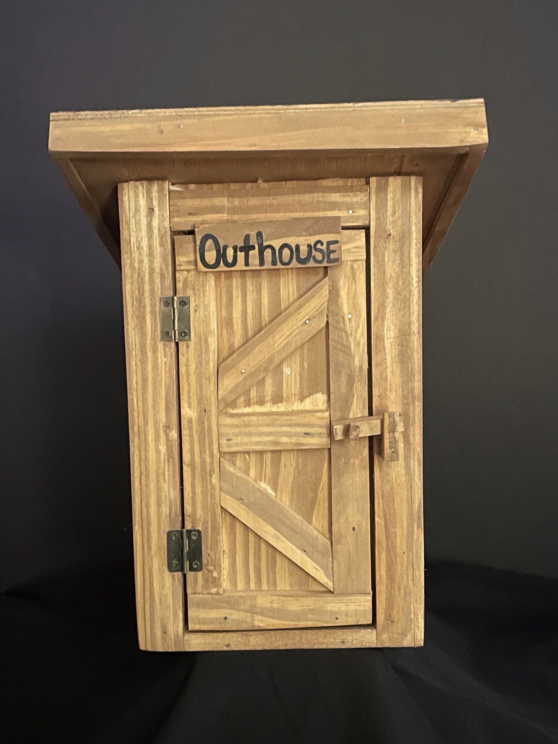 gnome in outhouse with working hinges and wood handle