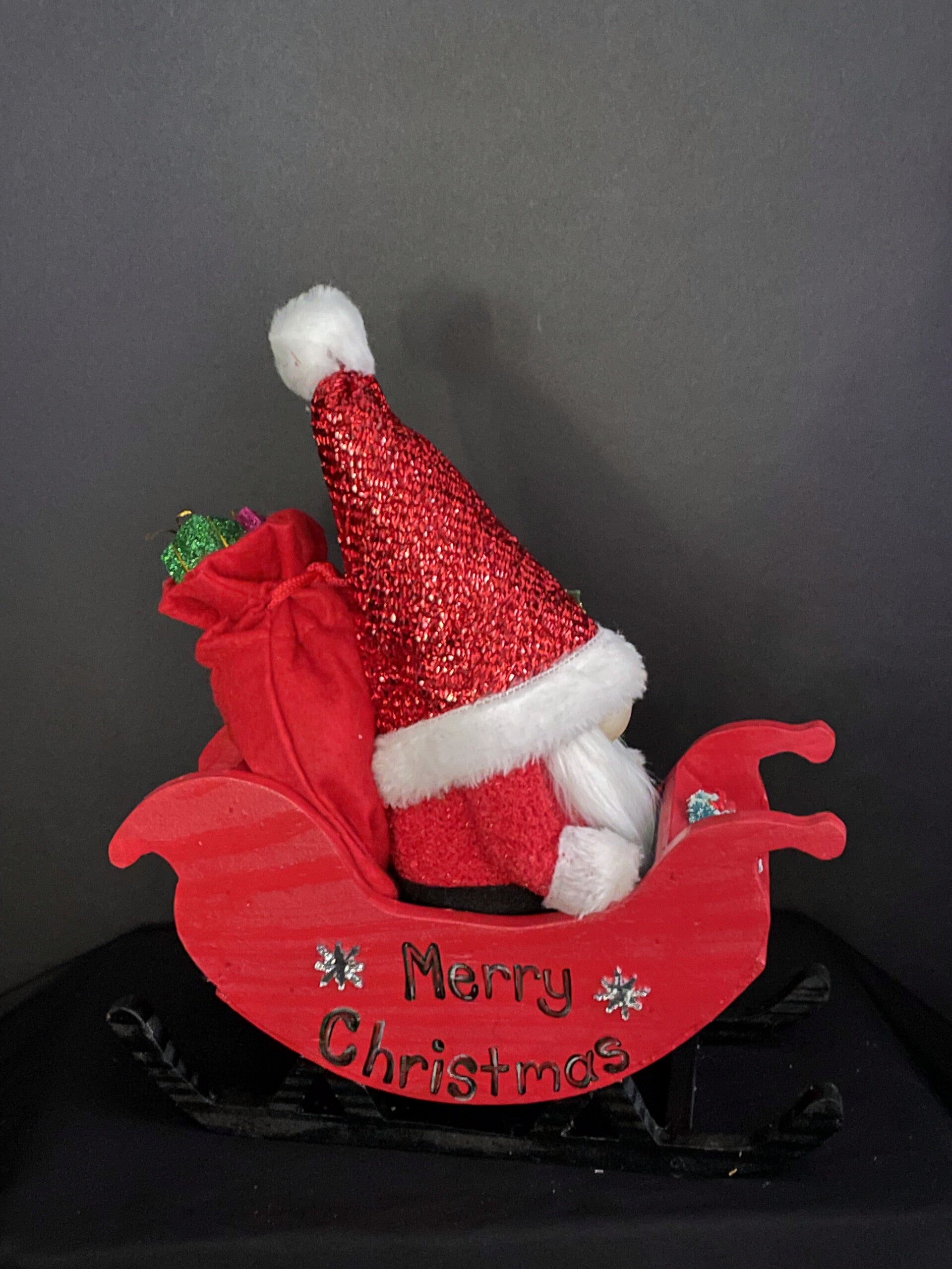 santa gnome in a sleigh with his bags of toys. $55 each