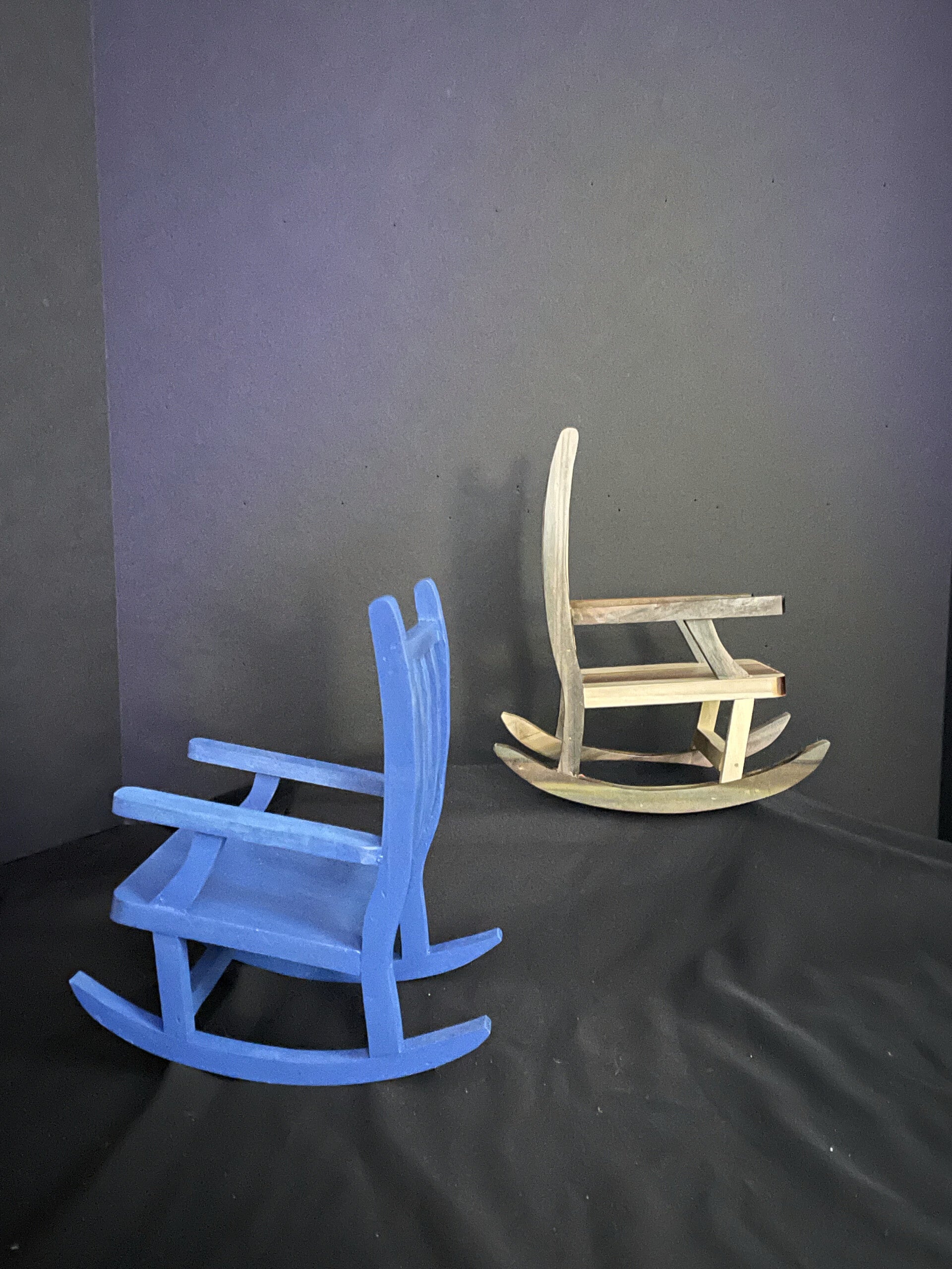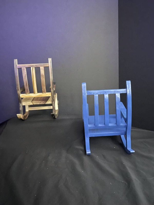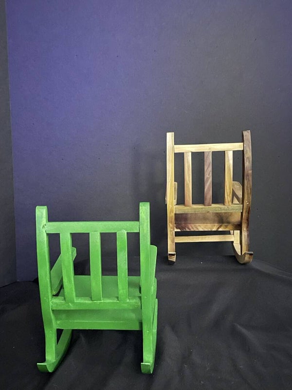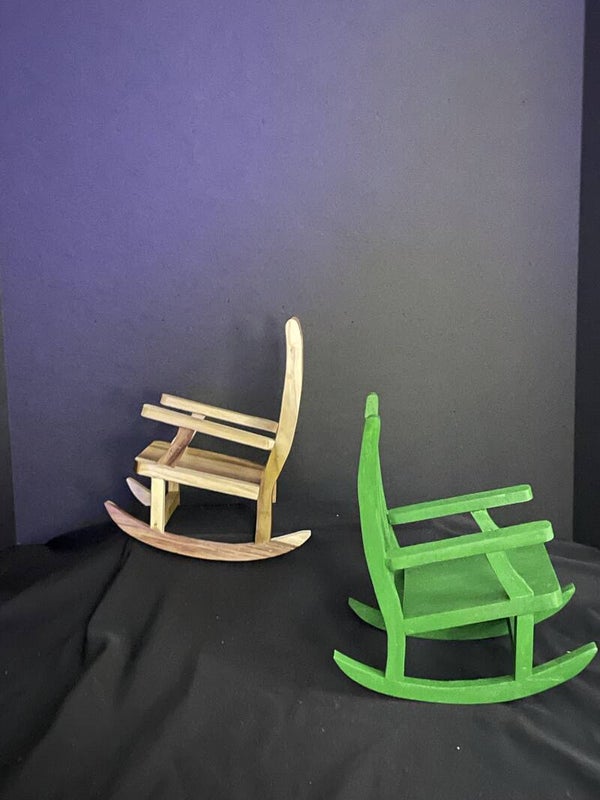 rocking chairs in clear coated and painted. these are 4 inches by 8 inches up the back.