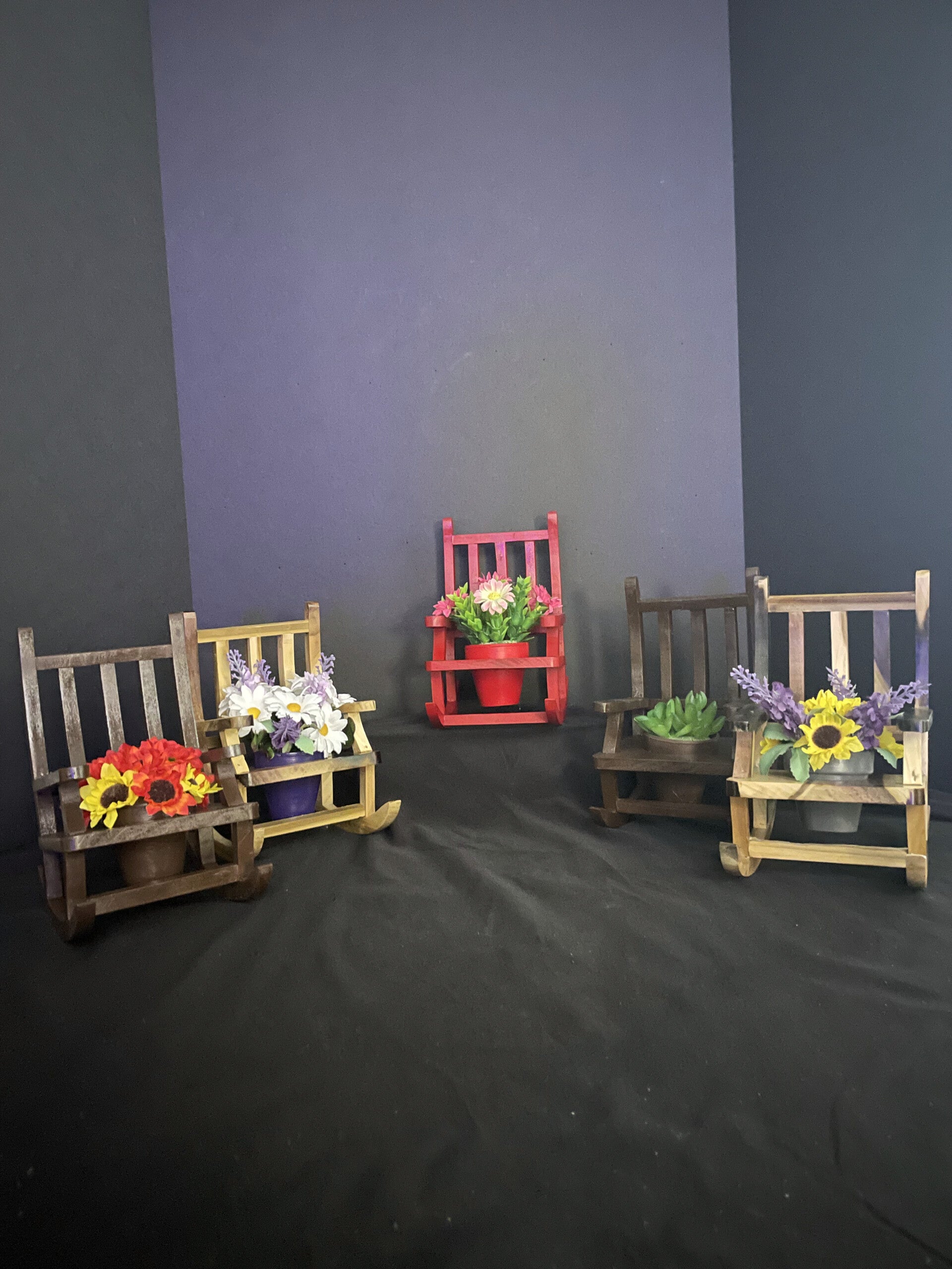 rocking chairs with small 2 inch clay pots